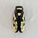 A hand-painted Provençal ceramic cicada, a traditional symbol of good luck and summer in the South of France. Glazed in glossy black, soft ochre and olive green with charming painted olives and foliage, this piece carries the warmth and playful spirit of mid-century French regional pottery. A decorative accent that can be hung or placed flat as a playful styling piece. It brings a touch of Mediterranean character to kitchens, outdoor loggias, entryways or garden rooms. Traditionally filled with lavender sprigs, this is as beautiful empty as it is filled.